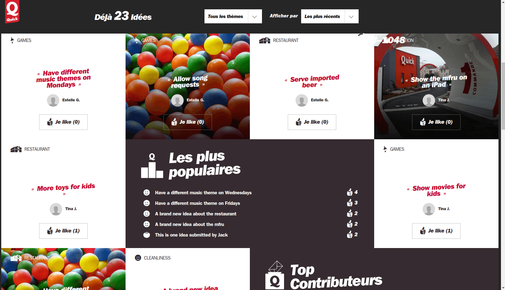 The project were a crowdsourcing platform to let people propose and vote ideas to improve the restaurant experience. The best idea won an year of free food at Quick.